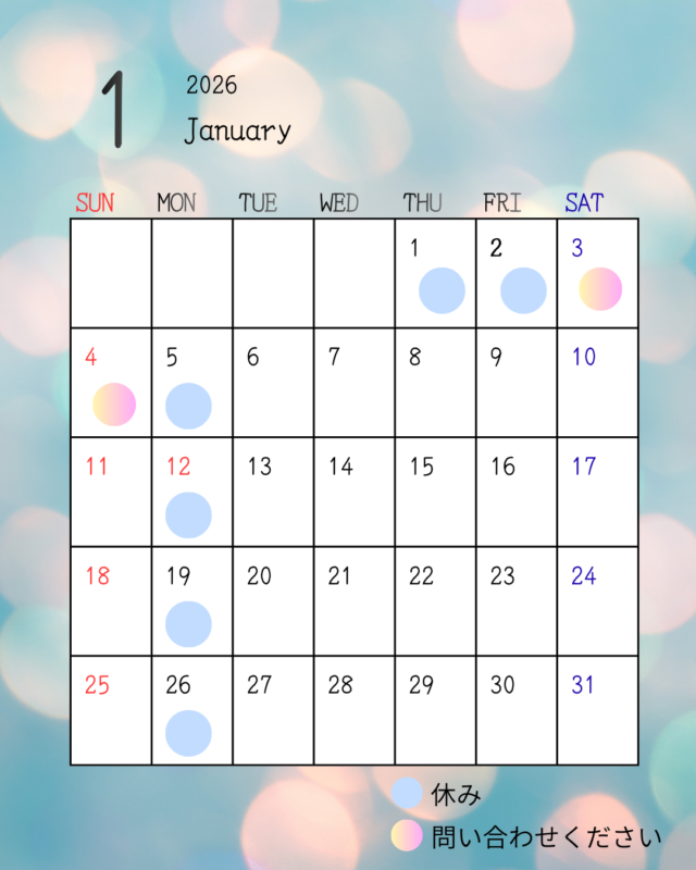 12月、1月のお休み